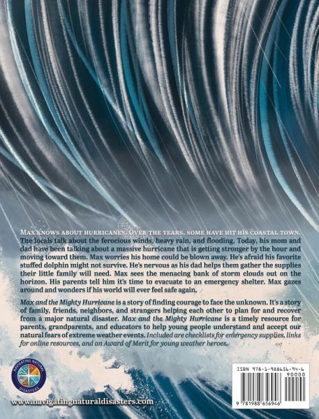 A hurricane is barreling toward Max's coastal home. Max is scared. What will happen to his family and friends and home as this monster storm roars in? Max knows about hurricanes. Over the years, some have hit his coastal town. The locals talk about ferocious winds, heavy rain, and flooding. His mom and dad are worried about the hurricane, which is getting stronger by the hour. Max worries his home could be blown away. He's nervous as his dad helps them gather the supplies they will need. When his parents tell him it's time to evacuate to an emergency shelter, Max wonders if his world will ever feel safe again. Max and the Mighty Hurricane explores the natural fears of a young boy who is forced to face the possible loss of his life, his home, and the people he loves. As Max and his family, friends, and neighbors come together, they show us the power of community in the face of a major natural disaster. Max and the Mighty Hurricane is an engaging resource for parents, grandparents, and educators to help young people understand and accept our natural fears of extreme weather events and plan ahead to survive them. Included are checklists for emergency supplies, links for online resources, and an Award of Merit for young weather heroes.