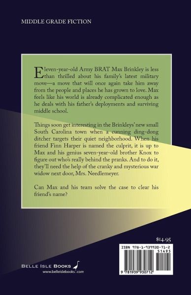 Eleven-year-old Army BRAT Max Brinkley is less than thrilled about his family's latest military move-a move that will once again take him away from the people and places he has grown to love. Max feels like his world is already complicated enough as he deals with his father's deployments and surviving middle school. Things soon get interesting in the Brinkleys' new small South Carolina town when a cunning ding-dong ditcher targets their quiet neighborhood. When his friend Finn Harper is named the culprit, it is up to Max and his genius seven-year-old brother Knox to figure out who's really behind the pranks. And to do it, they'll need the help of the cranky and mysterious war widow next door, Mrs. Needlemeyer. Can Max and his team solve the case to clear his friend's name?