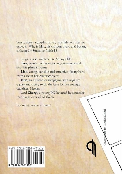 Sonny draws a graphic novel, much darker than he expects. Why is Max, his cartoon bread and butter, so keen for Sonny to finish it? It brings new characters into Sonny’s life: Tony, newly widowed, facing retirement and with his plans in ruins; Lisa, young, capable and attractive, facing hard truths about her career choices; Elin, an art teacher struggling with negative equity and trying to do the best for her teenage daughter, Megan; And Cheryl, a young PC, haunted by a murder that hangs over all of them. But what connects them?