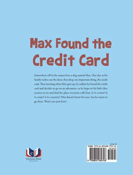 Somewhere off in the sunset lives a dog named Max. One day as his family rushes out the door, they drop one important thing, the credit card. That morning when Max gets up, he realizes he found the credit card and decides to go on an adventure, so he hops on his little blue scooter to try and find the place everyone calls East. Is it a town? Is it a state? Is it a country? Max doesn't know for sure, but he wants to go there. Won't you join him?