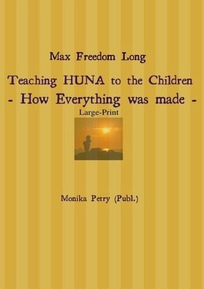 In Mai 2016 Monika Petry published the English Trilogy of the HRA Bulletins of Max Freedom Long from 1948 to 1970. Max F. Long wrote a lovely story in Febr. 1967 in Huna Vistas Bulletin No 76 - Teaching Huna to the Children, How Everything was made. In this story he explains the basics of Huna in the Creation of the Universe and all Species. He introduces his story:"The best stories of all are those which tell all about how WE were made, and also the animals, birds, insects and even flowers. It is also fun to hear how such things as clouds and rainbows came to be. In the Beginning, ever so many years ago, there was no world. There were no animals or people, not even stars in the sky. But all through the places where the stars and world and sun and moon were to be put, there was God. Now God is so large that no one can imagine anyone or anything that big, and so, in telling the story of CREATION (which is how things were made), the men of old had to think of God as a very wise and strong MAN, and they called Him, "The Father", and said that he lived in the heavens.The odd thing about God is that he is invisible. That means that no one can see Him. He has no body like ours, but is made of the STUFF that is used to make THOUGHTS. We can call it "thought stuff or "self stuff" because even people know that they are themSELVES, without having to stop to think that they have bodies. (You and I and all the creatures were given a bit of think stuff so we can know that we are alive and are God's Children.)If you have trouble thinking of things which can't be seen, you might like to play a little game like Jack and Jill did long ago. (You may know their story, but there was a part of it that was secret and did not get into the books. Now you can know the secret part.)..."
