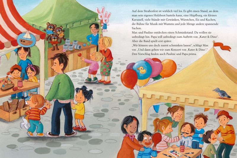 Juhu! Max geht mit Papa und seiner Freundin Pauline zum Straßenfest in der Stadt. Hier ist eine Menge los und es gibt viel zu entdecken: Max und Pauline möchten sich schminken lassen, Karussell fahren, Eis essen und eine super Band auf der Bühne sehen.