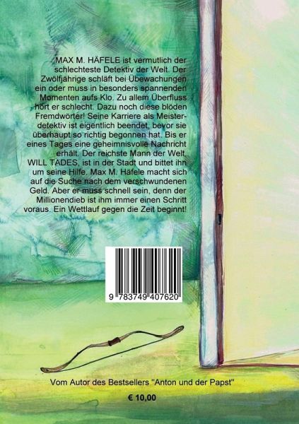 MAX M. HÄFELE ist vermutlich der schlechteste Detektiv der Welt. Der Zwölfjährige schläft bei Überwachungen ein oder muss in besonders spannenden Momenten aufs Klo. Zu allem Überfluss hört er schlecht. Dazu noch diese blöden Fremdwörter! Seine Karriere als Meisterdetektiv ist eigentlich beendet, bevor sie überhaupt so richtig begonnen hat. Bis er eines Tages eine geheimnisvolle Nachricht erhält. Der reichste Mann der Welt, WILL TADES, ist in der Stadt und bittet ihn um seine Hilfe. Max M. Häfele macht sich auf die Suche nach dem verschwundenen Geld. Aber er muss schnell sein, denn der Millionendieb ist ihm immer einen Schritt voraus. Ein Wettlauf gegen die Zeit beginnt!