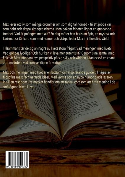 Max lever ett liv många drömmer om som digital nomad, fri att jobba var som helst och skapa sitt eget schema. Men bakom friheten ligger en gnagande tomhet: Vad är poängen med allt? En dag möter han baristan Epic, en mystisk och karismatisk tänkare som med humor och skärpa leder Max in i filosofins värld. Tillsammans tar de sig an några av livets största frågor: Vad är meningen med livet? Vad gör oss lyckliga? Och hur kan vi leva mer autentiskt? Genom sina samtal med Epic får Max inte bara nya perspektiv på sig själv och världen, utan också en chans att omvärdera vad som verkligen är viktigt. "Max och meningen med livet" är en lättsam och inspirerande guide till några av filosofins mest fascinerande idéer. Med värme och en nypa humor bjuds läsaren in till en resa som lika mycket handlar om att tänka stort som att hitta mening i de små ögonblicken i livet.