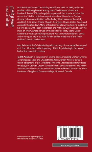Reinhardt owned The Bodley Head from 1957 to 1987, and smaller publishers like The Nonesuch Press and Reinhardt Books. This account of his life contains stories about his authors, among them Graham Greene, G.B. Shaw, Charlie Chaplin and his actor friends, illuminating the trajectory of British publishing in the second half of the twentieth century.