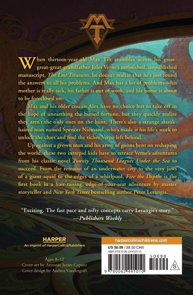 When thirteen-year-old Max Tilt happens upon his great-great-great-grandfather Jules Verne's unfinished, unpublished manuscript, The Lost Treasures, he doesn't realize that he's found the answers to all his problems. And Max has a lot of problems-his mother is sick, his father is out of work, and his home is about to be foreclosed on. But when Max and his cousin Alex discover that Verne's last work reveals everything he wrote was fact, not fiction, they realize that the book holds the key to something incredibly valuable. A treasure that can save his house-and maybe his entire family.