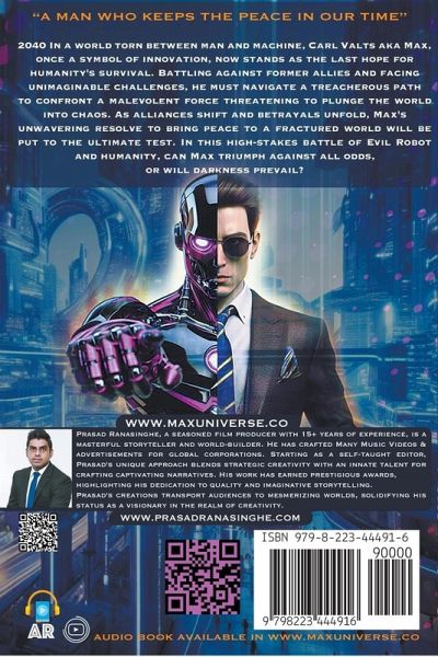"CARL VALTS" aka "MAX" , A Billionaire Tec Industrialist, once a symbol of innovation, now stands as the last hope for humanity's survival. Battling against former allies and facing unimaginable challenges, Carl Valts Led to Construct a Cyborg Clone to defend human raise when evil powerful AI Robot "LUDO" Start Artificial Reality , A war against humans Carl must navigate a treacherous path to confront a malevolent force threatening to plunge the world into chaos. As alliances shift and betrayals unfold, Max's unwavering resolve to bring peace to a fractured world will be put to the ultimate test. In this high stakes battle of technology and humanity, can Max triumph against all odds, or will darkness prevail?