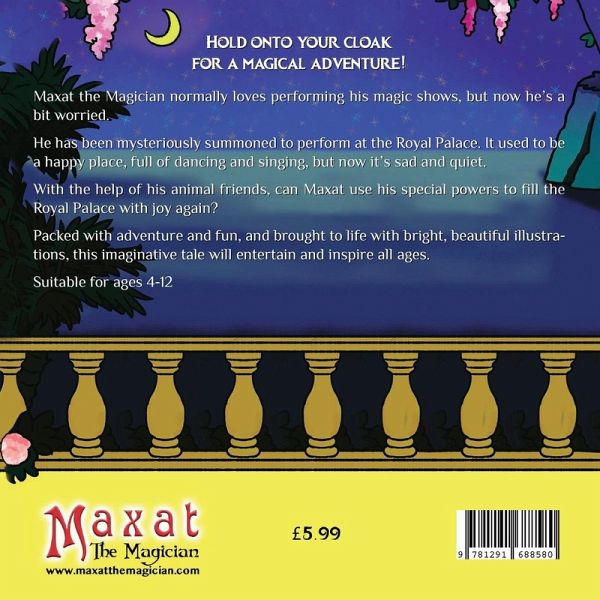 Hold onto your cloak for a magical adventure! Maxat the Magician normally loves performing his magic shows, but he has been mysteriously summoned to perform at the Royal Palace. It used to be a happy place, full of dancing and singing, but now it's sad and quiet. With the help of his animal friends, can Maxat use his special powers to fill the Royal Palace with joy again? Packed with excitement and fun, and brought to life through bright, beautiful illustrations, this imaginative tale will delight and surprise.