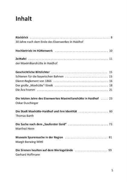 30 Jahre sind vergangen, seit das Eisenwerk Maximilianshütte in Haidhof seine Pforten schloss. Die letzte Schicht, nach fast 150 Jahren Stahl-Tradition in der "Maxhütte", endete am 30. Juni 1990. Arbeiter warfen ihre Handschuhe in den glühenden Kessel. Sie brauchten sie nicht mehr. Ihre Arbeit im traditionsreichen Oberpfälzer Stahlwerk war endgültig vorbei. Dabei stand der Name "Maxhütte" einst für 9000 Arbeitnehmer, für eine ganze Region, die mittlere Oberpfalz. Das Entstehen und die Entwicklung der Stadt Maxhütte-Haidhof waren die ganzen Jahrzehnte hindurch hautnah mit dem Schicksal des Eisenwerkes verknüpft, das für bescheidenen Wohlstand in der Region sorgte. Maxhütte-Haidhof begann sich nach der Schließung des Eisenwerkes mit riesigen Schritten zu verändern, wurde vielfältiger und bunter. "Wahrzeichen" der Maximilianshütte begannen zu verschwinden, fanden neue Eigentümer oder dienten nun anderen Zwecken. Trotzdem prägt die Silhouette des einstigen Eisenwerkes, benannt nach dem bayerischen König Maximilian II. Joseph, noch immer das Stadtbild. Und noch immer wissen Beschäftigte der "Maxhütte", die dort ihr ganzes Arbeitsleben verbrachten, die Geschichte jenes Werkes zu erzählen. Es sind oft unglaubliche Geschichten, die das Arbeiterleben einer vergangenen Epoche widerspiegeln.