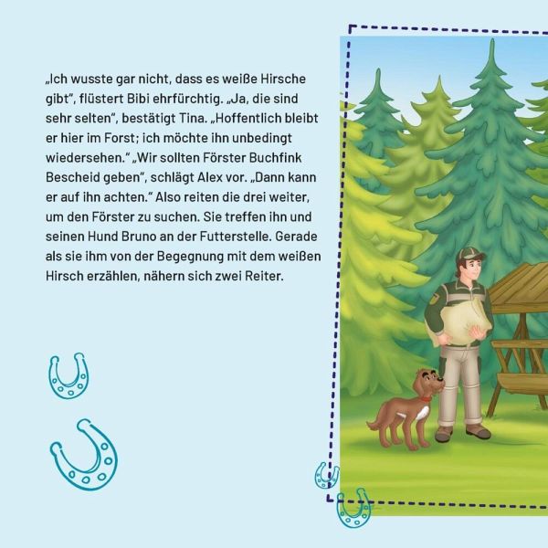 Bibi, Tina und Alexander treffen im Falkensteiner Forst auf einen weißen Hirsch. Sie sind fasziniert von dem seltenen Tier.