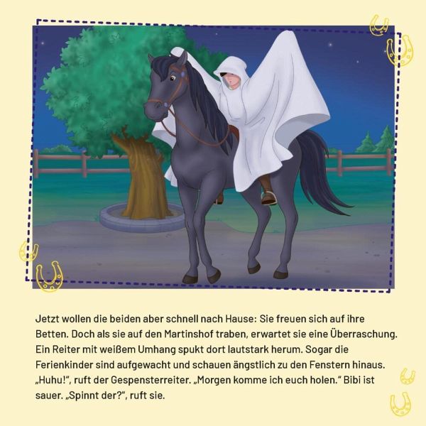 nur ein weißes Bettlaken erbeuten, das der Reiter verliert. Frau Martin bittet Bibi und Tina herauszufinden, wer der geheimnisvolle Unbekannte ist.