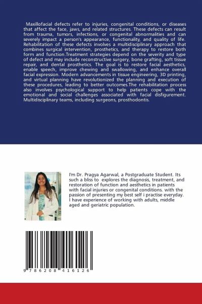 Maxillofacial defects refer to injuries, congenital conditions, or diseases that affect the face, jaws, and related structures. These defects can result from trauma, tumors, infections, or congenital abnormalities and can severely impact a person's appearance, functionality, and quality of life. Rehabilitation of these defects involves a multidisciplinary approach that combines surgical intervention, prosthetics, and therapy to restore both form and function.Treatment strategies depend on the severity and type of defect and may include reconstructive surgery, bone grafting, soft tissue repair, and dental prosthetics. The goal is to restore facial aesthetics, enable speech, improve chewing and swallowing, and enhance overall facial expression. Modern advancements in tissue engineering, 3D printing, and virtual planning have revolutionized the planning and execution of these procedures, leading to better outcomes.The rehabilitation process also involves psychological support to help patients cope with the emotional and social challenges associated with facial disfigurement. Multidisciplinary teams, including surgeons, prosthodontis.