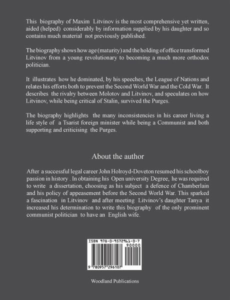 This biography of Maxim Litvinov is the most comprehensive yet written, aided (helped) considerably by information supplied by his daughter and so contains much material not previously published. The biography shows how age (maturity) and the holding of office transformed Litvinov from a young revolutionary to becoming a much more orthodox politician. It illustrates how he dominated, by his speeches, the League of Nations and relates his efforts both to prevent the Second World War and the Cold War. It describes the rivalry between Molotov and Litvinov, and speculates on how Litvinov, while being critical of Stalin, survived the Purges. The biography highlights the many inconsistencies in his career living a life style of a Tsarist foreign minister while being a Communist and both supporting and criticising the Purges.