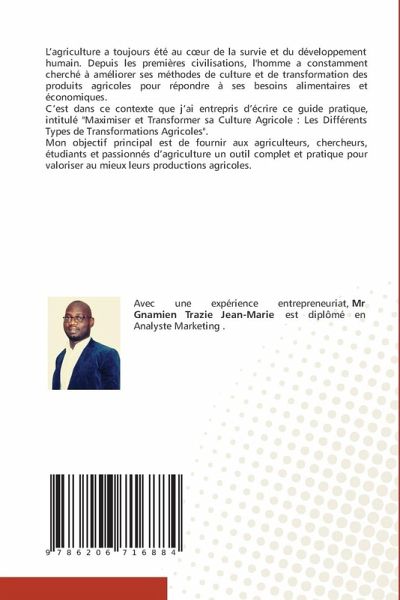 L'agriculture a toujours été au coeur de la survie et du développement humain. Depuis les premières civilisations, l'homme a constamment cherché à améliorer ses méthodes de culture et de transformation des produits agricoles pour répondre à ses besoins alimentaires et économiques.C'est dans ce contexte que j'ai entrepris d'écrire ce guide pratique, intitulé "Maximiser et Transformer sa Culture Agricole : Les Différents Types de Transformations Agricoles". Mon objectif principal est de fournir aux agriculteurs, chercheurs, étudiants et passionnés d'agriculture un outil complet et pratique pour valoriser au mieux leurs productions agricoles.