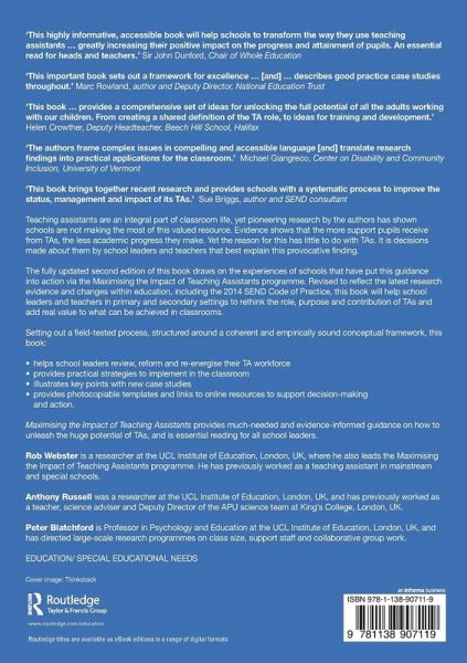 This highly informative, accessible book will help schools to transform the way they use teaching assistants, focusing on the quality of support rather than quantity, and greatly increasing their positive impact on the progress and attainment of pupils. An essential read for heads and teachers.