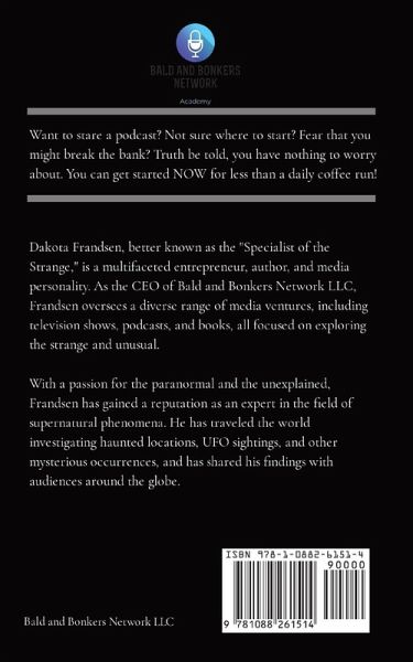 In the digital era, the power of podcasting has taken the world by storm, allowing individuals to share their voices, passions, and expertise with a global audience. Have you ever dreamed of starting your own podcast but hesitated due to concerns about the financial investment? Look no further! "Maximize Your Podcast for Low Cost" is a comprehensive guide that will lead you through the exciting world of podcasting without breaking the bank. Authored by the podcasting guru, Dakota Frandsen, in collaboration with the innovative Bald and Bonkers Network LLC, this book is the perfect companion to the renowned online course bearing the same name. With a wealth of experience in the industry, Dakota Frandsen and his team have mastered the art of building an online media presence without hefty expenditures. Inside this book, you will discover:Strategic Planning: Unearth the secrets of successful podcast planning, from niche selection to target audience identification. Learn how to optimize your content to engage and captivate listeners from the very first episode. Budget Equipment Essentials: Discover the essential tools and equipment needed to produce high-quality audio without spending a fortune. Dakota Frandsen shares his handpicked recommendations, proving that professional podcasting is achievable on a shoestring budget. Recording and Editing Mastery: Dive into the art of recording and editing like a pro. Explore free or low-cost software options, tips for noise reduction, and ways to enhance your podcast's overall production value. Creative Cover Art and Branding: Learn how to design captivating cover art and create a strong podcast brand that resonates with your target audience. Hosting and Distribution Hacks: Unlock the secrets of reliable and affordable podcast hosting services while ensuring your episodes reach a broader audience on multiple platforms. Marketing on a Budget: Master the art of marketing your podcast without spending a fortune on advertising. Explore organic growth strategies, social media promotion, and collaborating with other podcasters. Monetization for Beginners: Turn your passion project into a source of income with insightful guidance on monetizing your podcast. Discover various revenue streams and how to effectively implement them. Whether you're a budding podcaster or a seasoned media enthusiast, "Maximize Your Podcast for Low Cost" equips you with the knowledge and techniques necessary to establish a compelling online media presence on a minimal budget. Embrace the expertise of Dakota Frandsen and the Bald and Bonkers Network LLC, and let your voice be heard without spending more than the price of your daily coffee! Get ready to unleash your podcasting potential and connect with audiences worldwide. It's time to share your story, inspire others, and make a significant impact-all without draining your bank account. Grab your copy today and embark on an exhilarating podcasting journey!