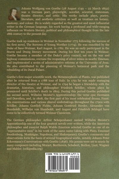 A great book of 1413 maxims from various Goethe works and sketchings Some samplers: "Wisdom is to be found only in truth" "The smallest hair casts its shadow" "Hindus in the desert vow never to eat fish" "We all live on the past and perish by the past" "We very seldom satisfy ourselves; all the more consoling, therefore, to have satisfied others" "What is esoteric is damaging when it tries to be exoteric" "A thinking man's greatest happiness is to have fathomed what can be fathomed and to revere in silence what cannot be fathomed" Includes many which are fleshed out to encompass paragraphs of thought: art, science, philosophy, love. Goethe's renaissance man spirit is on show. (John Hughes)