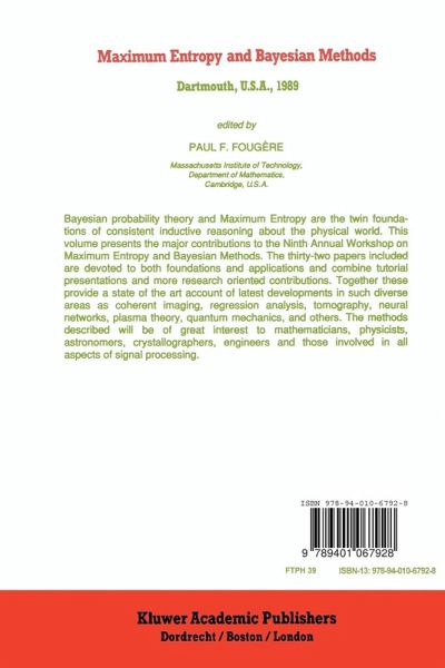 This volume represents the proceedings of the Ninth Annual MaxEnt Workshop, held at Dartmouth College in Hanover, New Hampshire, on August 14-18, 1989. These annual meetings are devoted to the theory and practice of Bayesian Probability and the Maximum Entropy Formalism. The fields of application exemplified at MaxEnt '89 are as diverse as the foundations of probability theory and atmospheric carbon variations, the 1987 Supernova and fundamental quantum mechanics. Subjects include sea floor drug absorption in man, pressures, neutron scattering, plasma equilibrium, nuclear magnetic resonance, radar and astrophysical image reconstruction, mass spectrometry, generalized parameter estimation, delay estimation, pattern recognition, heave responses in underwater sound and many others. The first ten papers are on probability theory, and are grouped together beginning with the most abstract followed by those on applications. The tenth paper involves both Bayesian and MaxEnt methods and serves as a bridge to the remaining papers which are devoted to Maximum Entropy theory and practice. Once again, an attempt has been made to start with the more theoretical papers and to follow them with more and more practical applications. Papers number 29, 30 and 31, by Kesaven, Seth and Kapur, represent a somewhat different, perhaps even "unorthodox" viewpoint, and are included here even though the editor and, indeed many in the audience at Dartmouth, disagreed with their content. I feel that scientific disagreements are essential in any developing field, and often lead to a deeper understanding.