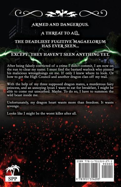 Armed and dangerous. A threat to all. The deadliest fugitive Magaelorum has ever seen... Except, they haven't seen anything yet. After being falsely convicted of a crime I didn't commit, I am now on the run to clear my name. I must find the bastard warlock who pinned his malicious wrongdoings on me. If only I knew where to look. Or how to get the High Council and another dragon clan off my trail. With the help of my three supposed dragon mates, a murderous fairy princess, and an annoying lycan I want to eat for breakfast, I might be able to come out unscathed. Maybe. To do so, I have to summon the wild beast inside me. Unfortunately, my dragon heart wants more than freedom. It wants revenge. Looks like I might be the worst killer after all.
