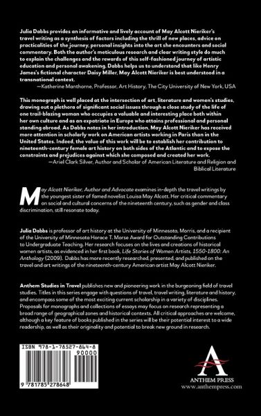 May Alcott Nieriker, Author and Advocate examines in-depth the travel writings by the youngest sister of famed novelist Louisa May Alcott. Her critical commentary on social and cultural concerns of the nineteenth century, such as gender and class discrimination, still resonate today.