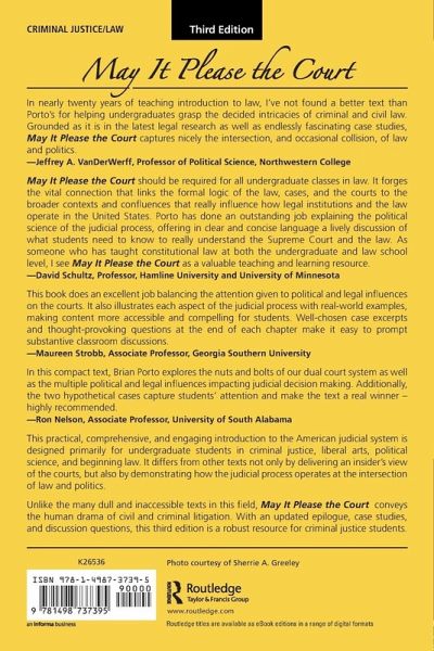 This practical, comprehensive, and engaging introduction to the American judicial system is designed primarily for undergraduate students in criminal justice, liberal arts, political science, and beginning law. It differs from other texts not only by delivering an insider's view of the courts, but also by demonstrating how the judicial process operates at the intersection of law and politics.
