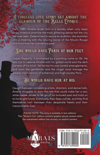 Immerse yourself in the daring and decadence of the Belle Époque... PLEASE NOTE: There are two editions of this story. Read below to find the right edition for you. Paris, 1889: Amélie Audet toils in a laundry when, only steps away, investors promise the most glittering dance hall the city has ever seen. Determined to secure an audition, she stumbles into a meeting with the alluring owner of the Moulin Rouge and must face her scandalous past. She would have Paris at her feet. Jasper Degrailly is enchanted by a painting come to life. He sets out to seduce Amélie with his gilded world and the dark warrens of his mind. Yet he has his own sordid entanglements, and soon the gentleman and the singer must manage the greedy machinations of bohemian and high-society Paris. He would have her at his. Caught between competing artists, directors, and dance halls, Amélie struggles to earn the role that could make her a star, while Jasper strives to let go of his tortured past and hold on to his bright future. Eventually, their fates collide, and they find themselves torn between their desperate hearts and their irreconcilable lives. PLEASE BE ADVISED: This "Writer's Cut" edition contains explicit content. If detailed descriptions of bondage, discipline, consensual power exchange, and sex offend you, please consider purchasing the mainstream edition of this story. Thank you. "A vivid world... of the female and society's judgements and expectations. Of power, control, passion, troubles, and hardships." ~ Books, Tea, and Me "Wow! What a fantastic book. I would give it more than 5 stars if I could..." ~ NetGalley Reviewer "Heywood's Paris burns hotter and shines brighter-her prose clever and banter sharp-making the reader feel as though they are walking through the city's streets." ~ Author A.R. Hadley "I loved Jasper and Amélie as a couple. Their chemistry was tangible..." ~ Raya's Reads "This book was amazing. This is the way historical fiction should be done..." ~ NetGalley Reviewer "I absolutely love [Heywood's] attention to detail... She really makes the world of late-19th century Paris come to life." ~ Little But Fierce Book Diary