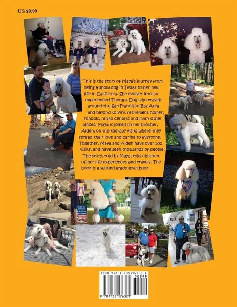 This is the story of Maya, a show dog from Texas, who finds a new life in California. She evolves into an experienced therapy dog who travels around the San Francisco Bay Area to visit retirement homes, schools, rehab centers and many other places. Maya is joined by her brother Aiden on the therapy visits where they spread their love and caring to everyone. Together Maya and Aiden have over 500 visits, and have seen thousands of people. The story, told by Maya tells children of her life experiences and travels. The book is a second grade level book.