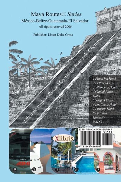The Maya Routes Travel Book Series is a compilation of the tourist routes of the countries of Mexico, Belize, Guatemala, and El Salvador taken from the book Maya Latin and Caribbean Routes published in 2006 and edited in English, Spanish, and French. Its contents include parts of the next published books—The Audio-Visual Course: Bilingual People for Simultaneous Teaching of English and Spanish. Also, a description of the industrial design 114002, Pyraland Homes was taken from the book Pyramidal Architectural and Engineering by the same author. This edition, Chetumal Bay, includes a business directory with pictures and maps of this Mayan region in the Southern Mexican State of Quintana Roo. Lisset Duke Cross is the publisher and sole owner of all copyrights, CIPO, Canada, seven trademark registrations in Central America, and owner of nine copyrights in Washington, USA.