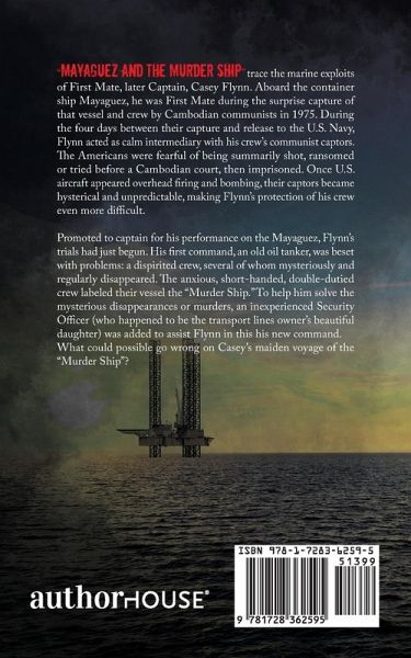 "Mayaguez and the Murder Ship" trace the marine exploits of First Mate, later Captain, Casey Flynn. Aboard the container ship Mayaguez, he was First Mate during the surprise capture of that vessel and crew by Cambodian communists in 1975. During the four days between their capture and release to the U.S. Navy, Flynn acted as calm intermediary with his crew's communist captors. The Americans were fearful of being summarily shot, ransomed or tried before a Cambodian court, then imprisoned. Once U.S. aircraft appeared overhead firing and bombing, their captors became hysterical and unpredictable, making Flynn's protection of his crew even more difficult. Promoted to captain for his performance on the Mayaguez, Flynn's trials had just begun. His first command, an old oil tanker, was beset with problems: a dispirited crew, several of whom mysteriously and regularly disappeared. The anxious, short-handed, double-dutied crew labeled their vessel the "Murder Ship." To help him solve the mysterious disappearances or murders, an inexperienced Security Officer (who happened to be the transport lines owner's beautiful daughter) was added to assist Flynn in this his new command. What could possible go wrong on Casey's maiden voyage of the "Murder Ship"?