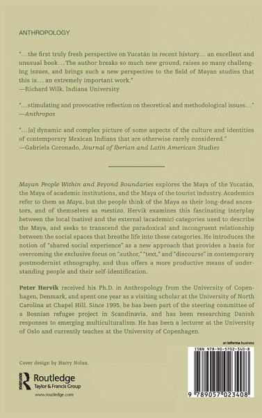 Mayan People Within and Beyond Boundaries explores the Maya of Yucatan, the Maya of academic institutions and the Maya of the tourist industry. It examines the interplay between the local and the external, academic categories of the Maya, and seeks to transcend the paradoxical and incongruent relationship between the social spaces that breathe life into the categories. The notion of "shared social experience" is introduced to embody a focus on reflexivity that goes beyond the subjective position of the author and helps demystify the coexisting subjectivities characteristic of ethnographic fieldwork. It provides a basis for overcoming the exclusive focus on "author," " text," and "discourse" in contemporary postmodernist ethnography, while still conveying important ethnographic information.