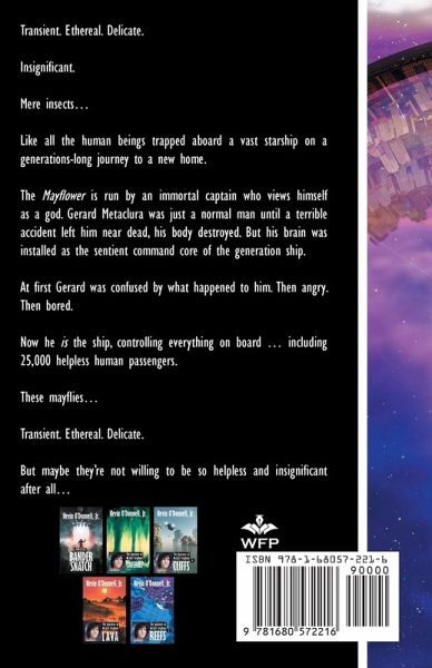 Transient. Ethereal. Delicate. Insignificant. Mere insects... Like all the human beings trapped aboard a vast starship on a generations-long journey to a new home. The Mayflower is run by an immortal captain who views himself as a god. Gerard Metaclura was just a normal man until a terrible accident left him near dead, his body destroyed. But his brain was installed as the sentient command core of the generation ship. At first Gerard was confused by what happened to him. Then angry. Then bored. Now he is the ship, controlling everything on board ... including 25,000 helpless human passengers. These mayflies... Transient. Ethereal. Delicate. But maybe they're not willing to be so helpless and insignificant after all...
