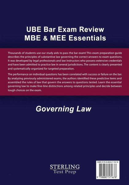 UBE bestseller. Increase your score! The performance individual MBE and MEE questions has been correlated with success or failure on the bar. By analyzing previously administered MBE and MEE exams, the authors identified these predictive items and assembled the rules of law that govern the answers to questions tested. This study guide is developed by legal professionals and law instructors with extensive credentials and admitted to practice law in several jurisdictions. The content is clearly presented and systematically organized for targeted preparation. Learn the essential governing law to make fine-line distinctions among related principles and decide between tough choices on the exam.
