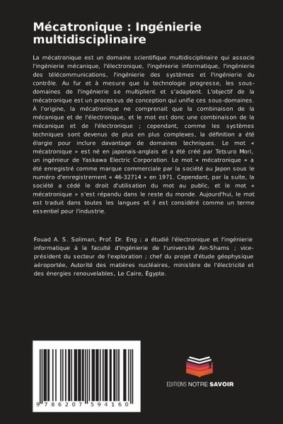 La mécatronique est un domaine scientifique multidisciplinaire qui associe l'ingénierie mécanique, l'électronique, l'ingénierie informatique, l'ingénierie des télécommunications, l'ingénierie des systèmes et l'ingénierie du contrôle. Au fur et à mesure que la technologie progresse, les sous-domaines de l'ingénierie se multiplient et s'adaptent. L'objectif de la mécatronique est un processus de conception qui unifie ces sous-domaines. À l'origine, la mécatronique ne comprenait que la combinaison de la mécanique et de l'électronique, et le mot est donc une combinaison de la mécanique et de l'électronique ; cependant, comme les systèmes techniques sont devenus de plus en plus complexes, la définition a été élargie pour inclure davantage de domaines techniques. Le mot « mécatronique » est né en japonais-anglais et a été créé par Tetsuro Mori, un ingénieur de Yaskawa Electric Corporation. Le mot « mécatronique » a été enregistré comme marque commerciale par la société au Japon sous le numéro d'enregistrement « 46-32714 » en 1971. Cependant, par la suite, la société a cédé le droit d'utilisation du mot au public, et le mot « mécatronique » s'est répandu dans le reste du monde. Aujourd'hui, le mot est traduit dans toutes les langues et il est considéré comme un terme essentiel pour l'industrie.