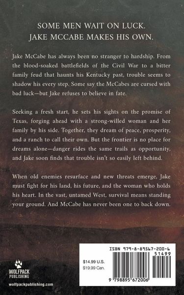 Some men wait on luck-Jake McCabe makes his own. Jake McCabe has always been no stranger to hardship. From the blood-soaked battlefields of the Civil War to a bitter family feud that haunts his Kentucky past, trouble seems to shadow his every step. Some say the McCabes are cursed with bad luck-but Jake refuses to believe in fate. Seeking a fresh start, he sets his sights on the promise of Texas, forging ahead with a strong-willed woman and her family by his side. Together, they dream of peace, prosperity, and a ranch to call their own. But the frontier is no place for dreams alone-danger rides the same trails as opportunity, and Jake soon finds that trouble isn't so easily left behind. When old enemies resurface and new threats emerge, Jake must fight for his land, his future, and the woman who holds his heart. In the vast, untamed West, survival means standing your ground. And McCabe has never been one to back down.