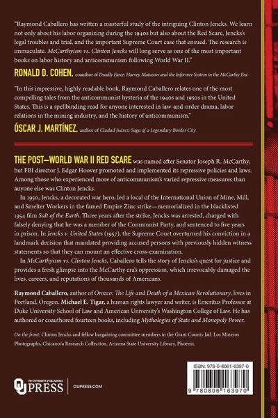 For twenty years after World War II, the United States was in the grips of its second and most oppressive red scare. The hysteria was driven by conflating American Communists with the real Soviet threat. The anticommunist movement was named after Senator Joseph R. McCarthy, but its true dominant personality was FBI director J. Edgar Hoover, who promoted and implemented its repressive policies and laws. The national fear over communism generated such anxiety that Communist Party members and many left-wing Americans lost the laws' protections. Thousands lost their jobs, careers, and reputations in the hysteria, though they had committed no crime and were not disloyal to the United States. Among those individuals who experienced more of anticommunism's varied repressive measures than anyone else was Clinton Jencks. Jencks, a decorated war hero, adopted as his own the Mexican American fight for equal rights in New Mexico's mining industry. In 1950 he led a local of the International Union of Mine, Mill, and Smelter Workers in the famed Empire Zinc strike-memorialized in the blacklisted 1954 film Salt of the Earth-in which wives and mothers replaced strikers on the picket line after an injunction barred the miners themselves. But three years after the strike, Jencks was arrested and charged with falsely denying that he was a Communist and was sentenced to five years in prison. In Jencks v. United States (1957), the Supreme Court overturned his conviction in a landmark decision that mandated providing to an accused person previously hidden witness statements, thereby making cross-examination truly effective. In McCarthyism vs. Clinton Jencks, Caballero reveals for the first time that the FBI and the prosecution knew all along that Clinton Jencks was innocent. Jencks's case typified the era, exposing the injustice that many suffered at the hands of McCarthyism. The tale of Jencks's quest for justice provides a fresh glimpse into the McCarthy era's oppression, which irrevocably damaged the lives, careers, and reputations of thousands of Americans.
