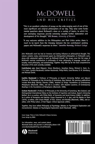 "A very welcome addition to the 'Philosophers and theirCritics' series: there is much to be learnt from theinterplay between the ten contributors' probing papers andMcDowell's responses to them." Jennifer Hornsby, BirkbeckCollege
