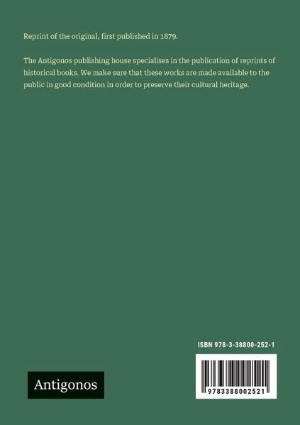 Reprint of the original, first published in 1879. The Antigonos publishing house specialises in the publication of reprints of historical books. We make sure that these works are made available to the public in good condition in order to preserve their cultural heritage.