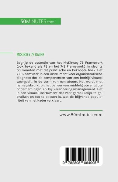 Begrijp de essentie van het McKinsey 7S Framework (ook bekend als 7S en het 7-S Framework) in slechts 50 minuten met dit praktische en beknopte boek. Het 7-S Raamwerk is een instrument voor organisatorische diagnose dat de componenten van een bedrijf visueel weergeeft, in de vorm van een atoom. Het wordt met name gebruikt bij het beheer van middelgrote en grote ondernemingen en bij veranderingsmanagement. Het is een visueel instrument dat zeer gemakkelijk te gebruiken en toe te passen is, wat de blijvende populariteit van het kader verklaart. Dit boek biedt u een handige inleiding tot de 7 S'en van het model: strategie, structuur, vaardigheden, gedeelde waarden, stijl, systemen en personeel. U leert niet alleen hoe u deze factoren met behulp van het raamwerk kunt identificeren, maar u zult ook praktijkgevallen onder de loep nemen, kennismaken met de tekortkomingen van het instrument, waaronder het abstracte karakter ervan, en kennismaken met verwante modellen, zoals flowcharts en processheets. Over het McKinsey 7S Raamwerk : Het McKinsey 7S Framework werd voor het eerst geïntroduceerd in de jaren 1980 in een artikel genaamd Structure is not Organization, door Robert Waterman, Thomas Peters en Julien Philips. Het omvat het heroverwegen van de volledige organisatie van een bedrijf in plaats van eenvoudigweg aan te passen wat al wordt gedaan. De unieke atoomstructuur en het gebruik van een eenvoudig geheugensteuntje maken het gemakkelijker om het concept te onthouden en de structuur van de zeven elementen te visualiseren, wat bijdraagt tot de bekendheid en levensduur van het model. In dit boek ontdekt u hoe het McKinsey 7S-kader u kan helpen, leert u hoe u relaties op de werkplek kunt identificeren en gebruikt u uw resultaten om de efficiëntie van uw bedrijf aanzienlijk te verbeteren. Een duidelijke uitleg van de voordelen en mogelijke nadelen van de methode, een bespreking van een praktische casus en een inleiding tot verwante modellen geven u de instrumenten die u nodig hebt om uw aanpak op uw situatie af te stemmen.