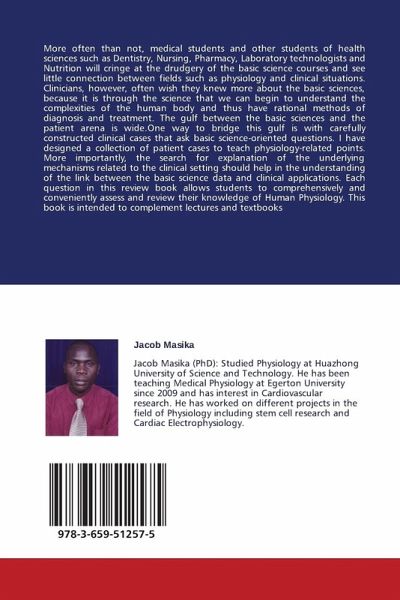 More often than not, medical students and other students of health sciences such as Dentistry, Nursing, Pharmacy, Laboratory technologists and Nutrition will cringe at the drudgery of the basic science courses and see little connection between fields such as physiology and clinical situations. Clinicians, however, often wish they knew more about the basic sciences, because it is through the science that we can begin to understand the complexities of the human body and thus have rational methods of diagnosis and treatment. The gulf between the basic sciences and the patient arena is wide.One way to bridge this gulf is with carefully constructed clinical cases that ask basic science-oriented questions. I have designed a collection of patient cases to teach physiology-related points. More importantly, the search for explanation of the underlying mechanisms related to the clinical setting should help in the understanding of the link between the basic science data and clinical applications. Each question in this review book allows students to comprehensively and conveniently assess and review their knowledge of Human Physiology. This book is intended to complement lectures and textbooks