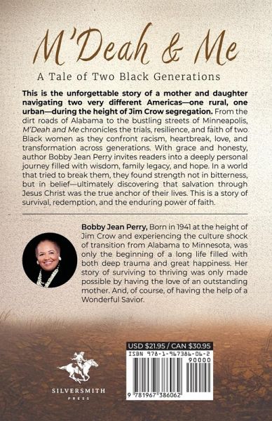 This is the unforgettable story of a mother and daughter navigating two very different Americas-one rural, one urban-during the height of Jim Crow segregation. From the dirt roads of Alabama to the bustling streets of Minneapolis, M'Deah and Me chronicles the trials, resilience, and faith of two Black women as they confront racism, heartbreak, love, and transformation across generations. With grace and honesty, author Bobby Jean Perry invites readers into a deeply personal journey filled with wisdom, family legacy, and hope. In a world that tried to break them, they found strength not in bitterness, but in belief-ultimately discovering that salvation through Jesus Christ was the true anchor of their lives. This is a story of survival, redemption, and the enduring power of faith.