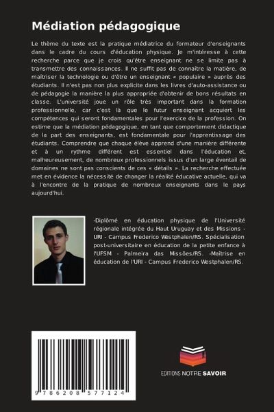 Le thème du texte est la pratique médiatrice du formateur d'enseignants dans le cadre du cours d'éducation physique. Je m'intéresse à cette recherche parce que je crois qu'être enseignant ne se limite pas à transmettre des connaissances. Il ne suffit pas de connaître la matière, de maîtriser la technologie ou d'être un enseignant « populaire » auprès des étudiants. Il n'est pas non plus explicite dans les livres d'auto-assistance ou de pédagogie la manière la plus appropriée d'obtenir de bons résultats en classe. L'université joue un rôle très important dans la formation professionnelle, car c'est là que le futur enseignant acquiert les compétences qui seront fondamentales pour l'exercice de la profession. On estime que la médiation pédagogique, en tant que comportement didactique de la part des enseignants, est fondamentale pour l'apprentissage des étudiants. Comprendre que chaque élève apprend d'une manière différente et à un rythme différent est essentiel dans l'éducation et, malheureusement, de nombreux professionnels issus d'un large éventail de domaines ne sont pas conscients de ces « détails ». La recherche effectuée met en évidence la nécessité de changer la réalité éducative actuelle, qui va à l'encontre de la pratique de nombreux enseignants dans le pays aujourd'hui.