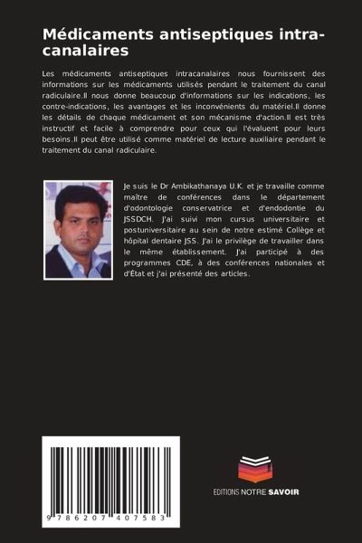 Les médicaments antiseptiques intracanalaires nous fournissent des informations sur les médicaments utilisés pendant le traitement du canal radiculaire.Il nous donne beaucoup d'informations sur les indications, les contre-indications, les avantages et les inconvénients du matériel.Il donne les détails de chaque médicament et son mécanisme d'action.Il est très instructif et facile à comprendre pour ceux qui l'évaluent pour leurs besoins.Il peut être utilisé comme matériel de lecture auxiliaire pendant le traitement du canal radiculaire.