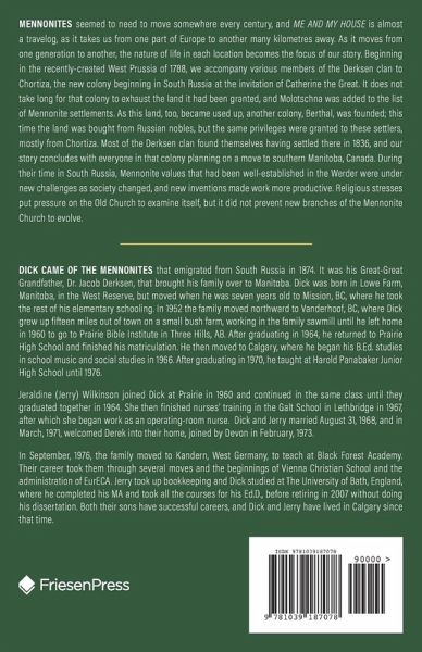 Mennonites seemed to need to move somewhere every century, and ME AND MY HOUSE is almost a travelog, as it takes us from one part of Europe to another many kilometres away. As it moves from one generation to another, the nature of life in each location becomes the focus of our story. Beginning in the recently-created West Prussia of 1788, we accompany various members of the Derksen clan to Chortiza, the new colony beginning in South Russia at the invitation of Catherine the Great. It does not take long for that colony to exhaust the land it had been granted, and Molotschna was added to the list of Mennonite settlements. As this land, too, became used up, another colony, Berthal, was founded; this time the land was bought from Russian nobles, but the same privileges were granted to these settlers, mostly from Chortiza. Most of the Derksen clan found themselves having settled there in 1836, and our story concludes with everyone in that colony planning on a move to southern Manitoba, Canada. During their time in South Russia, Mennonite values that had been well-established in the Werder were under new challenges as society changed, and new inventions made work more productive. Religious stresses put pressure on the Old Church to examine itself, but it did not prevent new branches of the Mennonite Church to evolve.