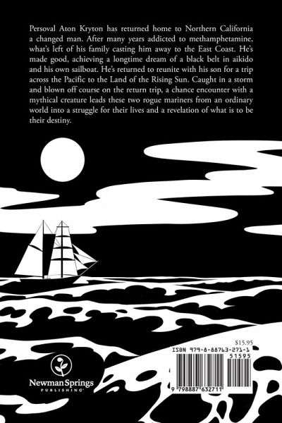 Persoval Aton Kryton has returned home to Northern California a changed man. After many years addicted to methamphetamine, what's left of his family casting him away to the East Coast. He's made good, achieving a longtime dream of a black belt in aikido and his own sailboat. He's returned to reunite with his son for a trip across the Pacific to the Land of the Rising Sun. Caught in a storm and blown off course on the return trip, a chance encounter with a mythical creature leads these two rogue mariners from an ordinary world into a struggle for their lives and a revelation of what is to be their destiny.