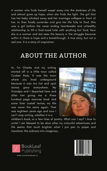 A woman who finds herself swept away into the darkness of life and almost gives up hope, when she finds the light. The girl that has her baby whisked away and her marriage collapse in front of her, to then finally surrender and give her life fully to God. She was a girl before the never ending heartbreaks and unhealthy relationship to fill a God-sized hole with anything but God. Now she is a woman and she sees the beauty in the struggle because within it, there is hope and a breakthrough. A true story, but not a sad one. It is a story of inspiration.