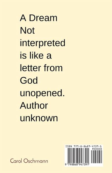 Serious about studying your dreams? This booklet will help you. It gives ideas on interpretation and the help you can get from a dream group. The author started with no education as far as psychology goes. The dreams led her to find important symbols and their meanings. She has increased her education, as will you, and led many dream groups throughout her forty plus years of doing this work. She has seen many changes, for the positive, that this work can bring. Don't delay. Start now. God has a message for you. Jesus spoke in parables that tugged at His audiences heart strings, and -as now- they mostly need interpreting. Find the help you can get in a group.