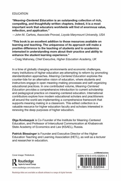 In a time of globally changing environments and economic challenges, many institutions of higher education are attempting to reform by promoting standardization approaches. Meaning-Centered Education explores the counter-tide for an alternative vision of education, where students and instructors engage in open meaning-making processes and self-organizing educational practices. In one contributed volume, Meaning-Centered Education provides a comprehensive introduction to current scholarship and pedagogical practice on meaning-centered education. International contributors explore how modern educational scholars and practitioners all around the world are implementing a comprehensive framework that supports meaning making in a classroom. This edited collection is a valuable resource for higher education faculty and scholars interested in renewing the deep purposes of higher education.