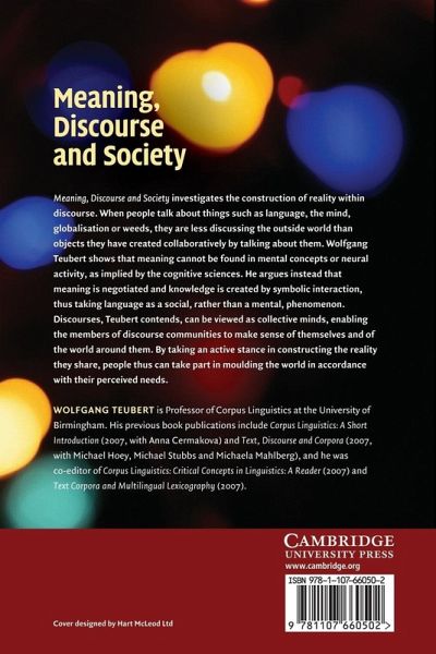 Meaning, Discourse and Society investigates the construction of reality within discourse. When people talk about things such as language, the mind, globalisation or weeds, they are less discussing the outside world than objects they have created collaboratively by talking about them. Wolfgang Teubert shows that meaning cannot be found in mental concepts or neural activity, as implied by the cognitive sciences. He argues instead that meaning is negotiated and knowledge is created by symbolic interaction, thus taking language as a social, rather than a mental, phenomenon. Discourses, Teubert contends, can be viewed as collective minds, enabling the members of discourse communities to make sense of themselves and of the world around them. By taking an active stance in constructing the reality they share, people thus can take part in moulding the world in accordance with their perceived needs.