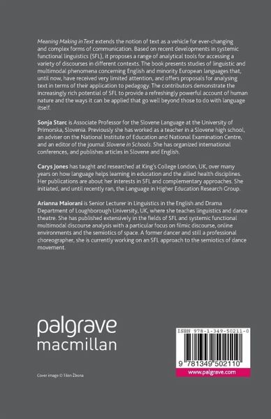 Meaning Making in Text presents new insights into forms of communication in a range of contexts: cultural, linguistic, multimodal and educational. The thirteen chapters are all linked theoretically by advances in Systemic Functional Linguistics (SFL).