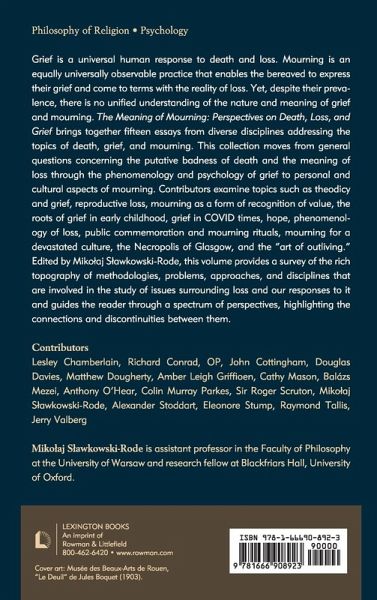 Introduction Mikolaj Slawkowski-Rode Chapter 1: Hume and Doctor Johnson on Death Jerry Valberg Chapter 2: The Problem of Mourning Eleonore Stump Chapter 3: What Can the Roman Catholic Liturgies of the Dead Offer Mourners: Solidarity with the Deceased and Hopeful Protest? Richard Conrad, OP Chapter 4: Toward a Philosophical Theology of Pregnancy Loss Amber L. Griffioen Chapter 5: Mourning: A Phenomenology Balázs M. Mezei Chapter 6: Mourning and the Recognition of Value Cathy Mason and Matt Dougherty Chapter 7: Grieving and Mourning: The Psychology of Bereavement Colin Murray Parkes Chapter 8: Bereavement, Grief, and Mourning John Cottingham Chapter 9: Mourning and the Second-Person Perspective Mikolaj Slawkowski-Rode Chapter 10: Mourning Academic Mentors and Mentees Douglas J. Davies Chapter 11: Mourning and Memory, Private and Public Dimensions Anthony O'Hear Chapter 12: The Work of Mourning Roger Scruton Chapter 13: Sidgwick's Dilemma Leslie Chamberlain Chapter 14: "Israel but